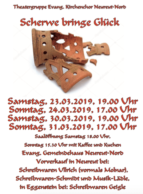So, send der jetzt e bissle neigierich worre? Dann isch gut. Nix wie na un Karde gekaaft, bevor der widder vor’em üwerfüllde Gemoindehaussaal schdehnt un nemmeh nei kommet. Es gebt nadierlich a widder die Möglichkoit, dass der die Karde bei mir odder beim Martin für d‘ Abholung an de Theaderkass vorbschdellet (telefonisch odder per Mail).